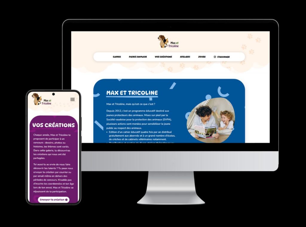 Max et Tricoline est programme éducatif destiné aux jeunes protecteurs des animaux, créé par la SVPA, en Suisse. J’ai eu le plaisir de les accompagner à la refonte complète de leur site web, en intégrant des fonctionnalités ludiques et interactives pensées pour les enfants. Un projet original, mêlant sensibilisation animale et interfaces pour petits et grands !